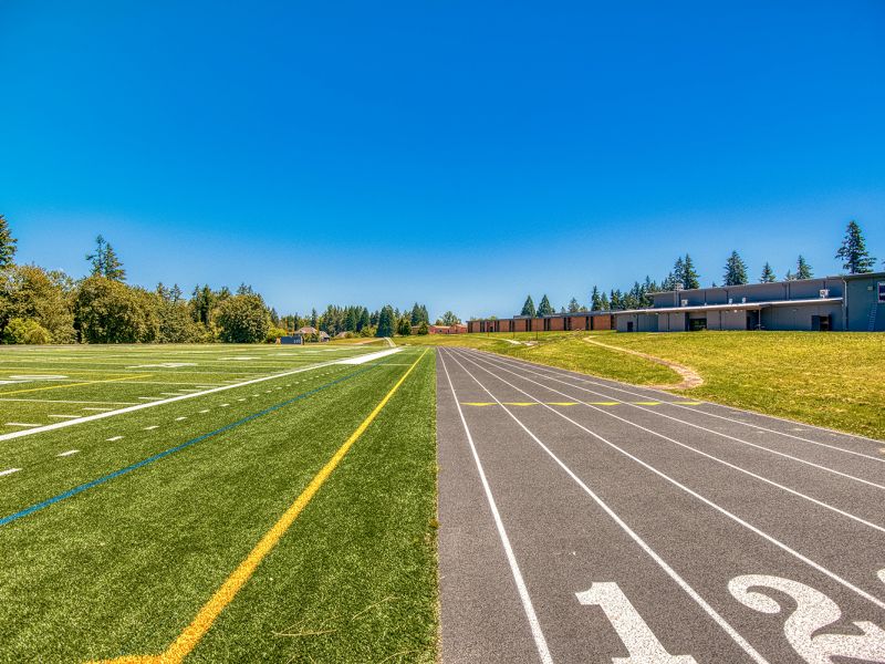 The newly renovated Tumwata Middle School in Oregon City, Oregon, features a range of recreational options to support the District’s student athletics program and physical education. This includes a brand-new turf athletic field with a track and a gymnasium featuring exposed timber that plays host to the District’s wrestling, basketball and dance programs.