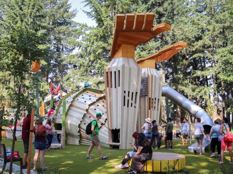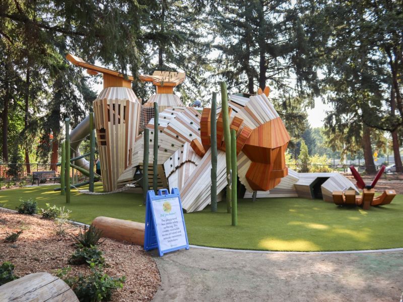 Additionally, the park features a custom play structure designed and fabricated by Earthscape Play Structures. With feedback from the community, the structure came from the City’s “Woods Gone Wild” theme and features a Forest Giant emerging from the woods to serve as an innovative way for guests to enjoy the new park.