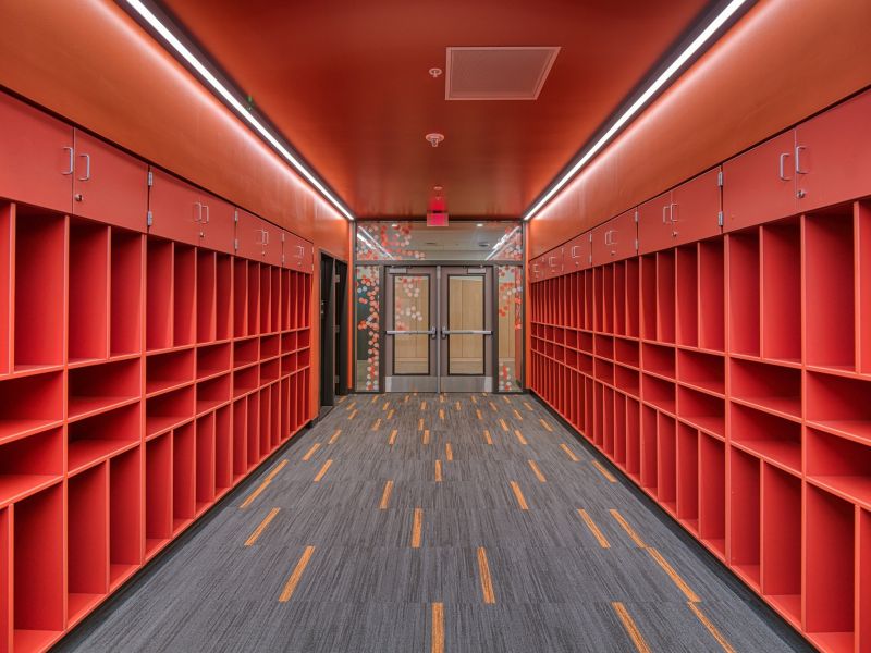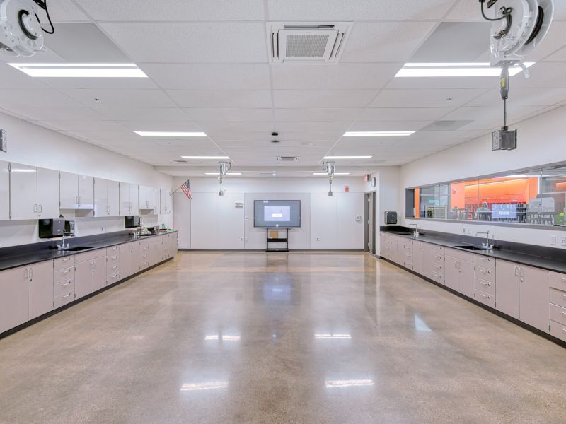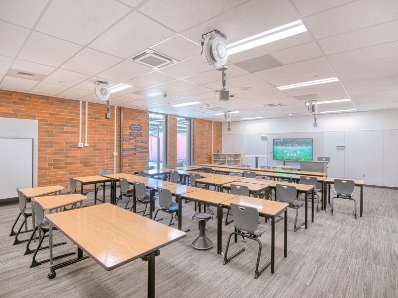 Scope of work included major renovations to the existing middle school’s common areas, secure school entries, parking lot and exterior. Scope of work also included the expansion of existing classrooms, HVAC replacement, plumbing improvements, roof work, technology upgrades, drop-off/pick-up improvements, and security upgrades, a new track and turf field, new lighting systems, plumbing field safety and site improvements.