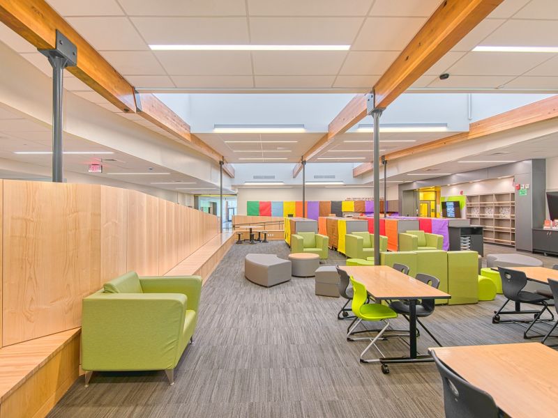 This complex renovation project was not just a complete transformation of the existing school’s interior, it was an opportunity to build a school that was more engaging, student-directed and project-based. This means that one of the more unique aspects to the design and renovation of Tumwata Middle School was the District’s desire to move away from traditional classroom settings in favor of more open, flexible spaces. Adopting what’s called “Learning Neighborhoods,” a designation new to the Oregon public school system, the newly remodeled middle school would consist of grade specific groupings of various classroom types that facilitate different types of learning.