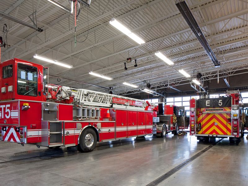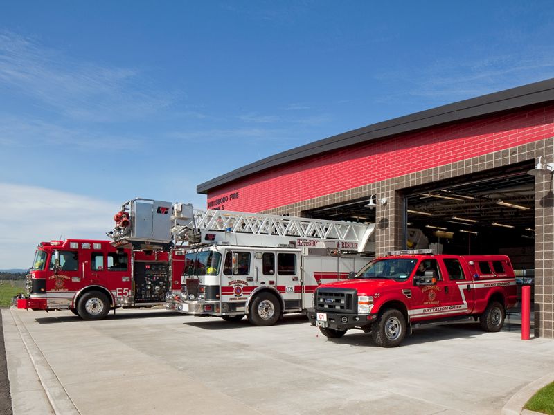 The 13,500 sf new fire station, constructed for the City of Hillsboro is located just east of the Hillsboro Airport. Unique features of the LEED Gold facility include a radiused metal roof system, a CMU/steel/wood-framed structure, and extensive use of sustainable materials. Project challenges involved working adjacent to a fully operational airport and installation of a new traffic signal on a major thoroughfare.