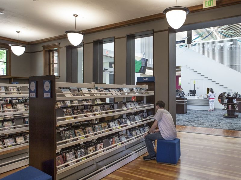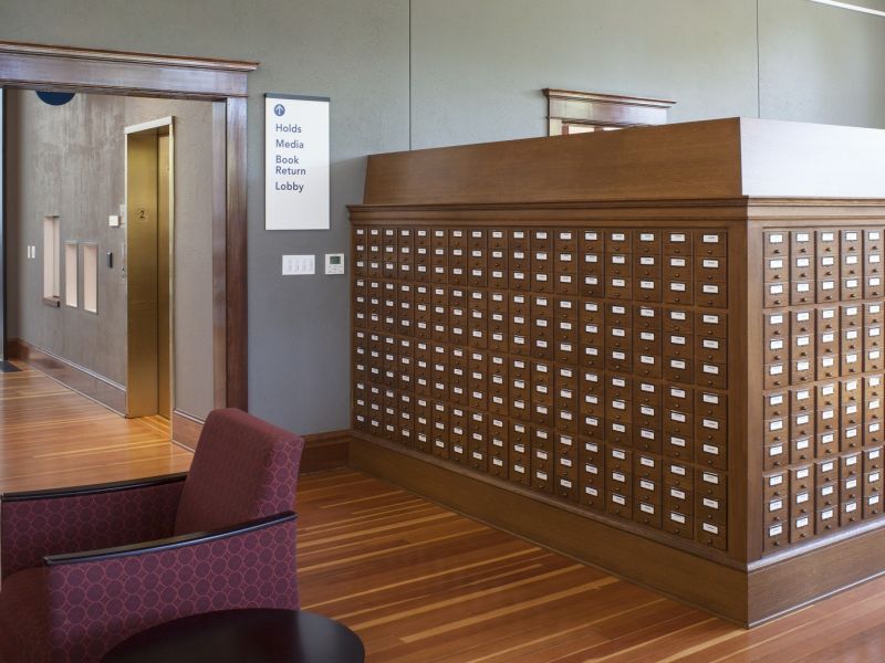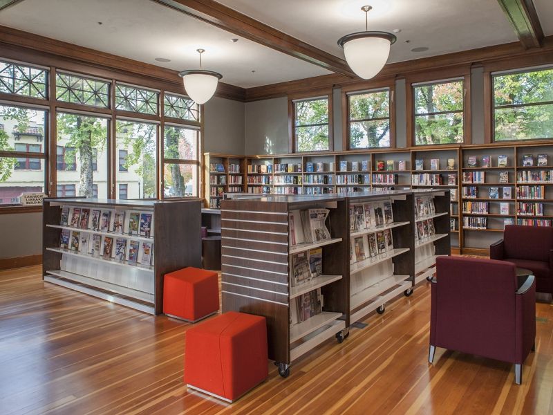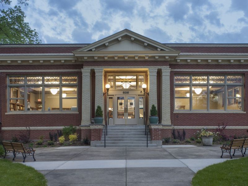 A large focus of the restoration effort was the original historic windows, exterior brick work, original wood floors, and the main entry to match the original entrance. Throughout the entire construction process, P&C and our specified subcontractors worked closely with the SHPO and NPS organizations to ensure the correct guidelines were followed down to the smallest detail. For example, it was discovered that several trees with Dutch Elm disease would have to be removed from the site to make room for the building addition. Rather than destroy them, P&C worked closely with the design team to integrate the trees into the new and existing building; a process that would normally take years would have to be done in under 9 months. These 100-year-old trees were salvaged and milled into over 10,000 BF and were eventually incorporated into the library’s bar tops and bookends. The effort put forth by P&C construction and our understanding of the SHPO and NPS historic renovation requirements led to the project being awarded The Demuro Award, the State of Oregon’s highest award for building preservation.