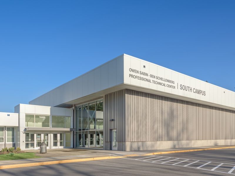 The Sabin-Schellenberg Professional Technical Center consisted of (3) campus locations including the North Campus (Sabin) and South Campus (Schellenberg) in Milwaukie, Oregon and the Land Lab in Clackamas, Oregon. This project at the South Campus included major renovations of classroom spaces, restrooms and common areas, as well as seismic, infrastructure and technology improvements throughout the school.