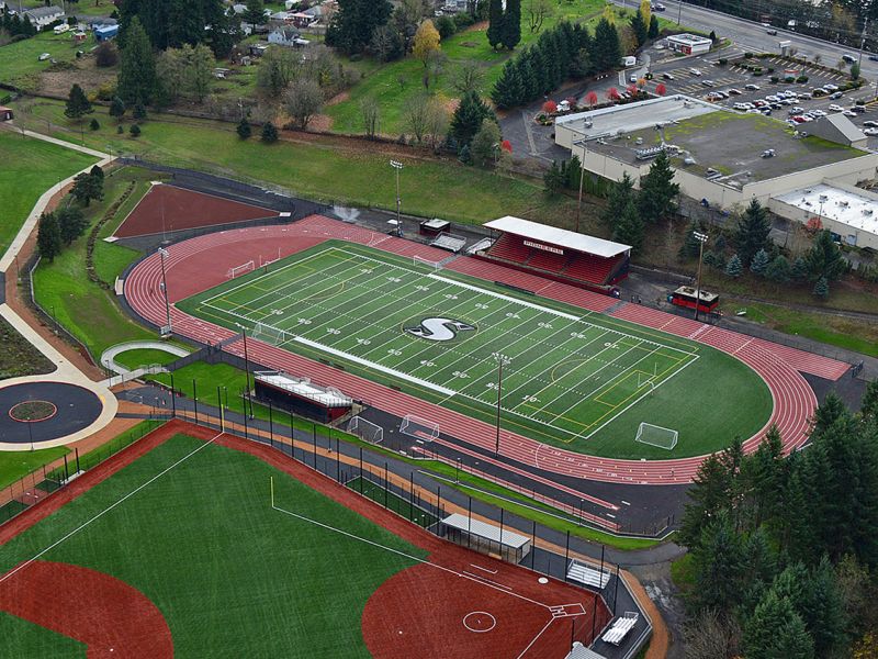 Project involved complete master plan construction for expanded sports fields and support buildings for the new Sandy High School. Work included approximately 400,000 sf of new synthetic turf installed at Football Field and both Varsity and JV Baseball and Softball Fields. Additionally, the existing track was rebuilt and resurfaced along with construction of other track and field event areas. Chain link fencing, backstops, boardwalks, bleachers, and athletic equipment were installed concurrent with construction of the fields. Associated support buildings included concession and restroom facilities, storage buildings, and baseball and softball field dugouts.