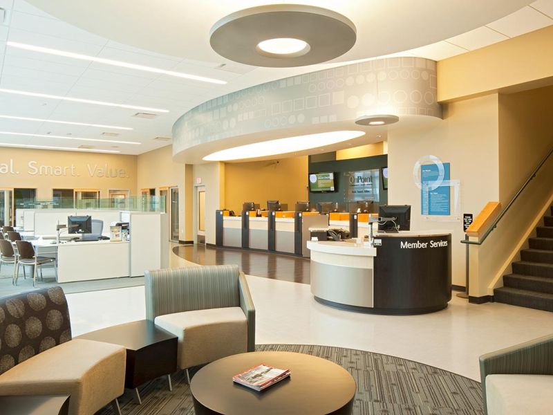 The new, 10,000 sf bank branch and mortgage loan center for OnPoint Community Credit Union is located adjacent to the Montgomery Park Building at NW 27th and NW Vaughn Street in northwest Portland. Designed by Soderstrom Architects, the two-story, masonry and steel building includes such features as a "Swiss Pearl" exterior panel system, a state-of-the-art underground storm water retention system, and earth friendly products such as marmoleum, low VOC paints and adhesives, and an energy efficient lighting control system. P&C was recognized by OnPoint for our outstanding attention to detail and the high quality of construction.